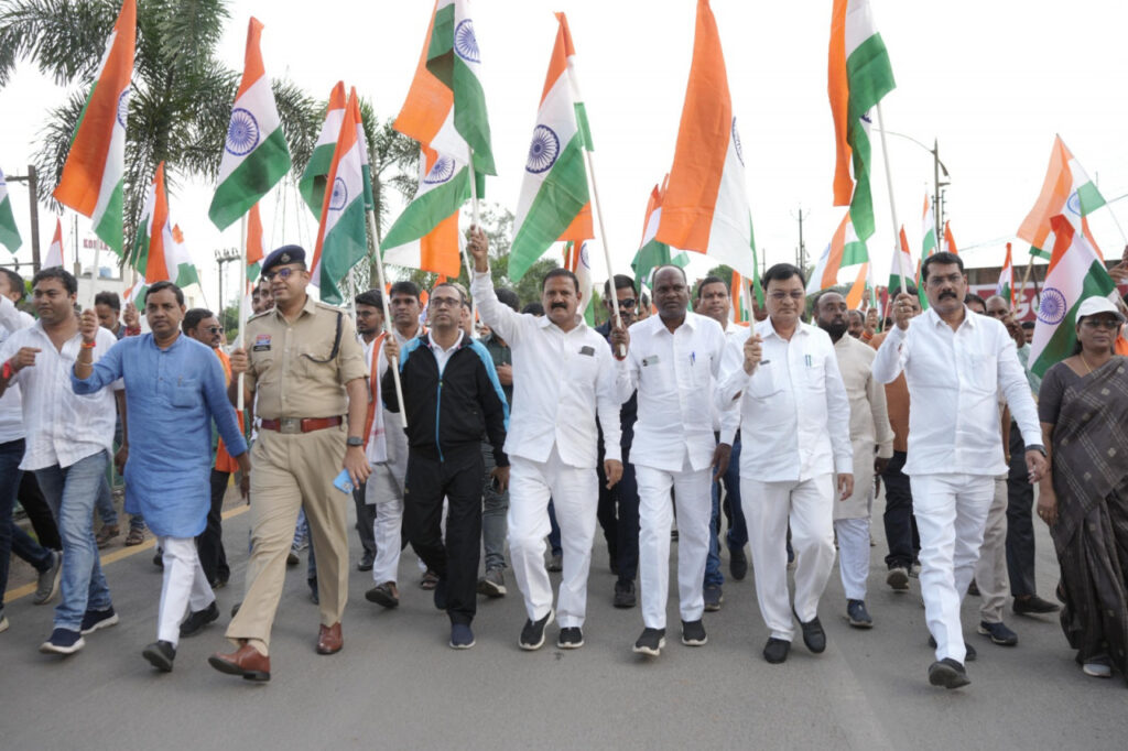 रायपुर, 14 अगस्त 2025 : वाणिज्य उद्योग व श्रम मंत्री श्री लखन लाल देवांगन के मुख्य आतिथ्य में राष्ट्रव्यापी हर घर तिरंगा अभियान के तहत आज कोरबा नगरीय क्षेत्र के घण्टाघर के ओपन थियेटर मैदान में तिरंगा यात्रा का आयोजन किया गया। कैबिनेट मंत्री श्री देवांगन ने तिरंगा यात्रा को हरी झंडी दिखाकर रवाना किया। यह रैली घंटाघर स्थित ओपन थियेटर मैदान से प्रारम्भ होकर शहर के प्रमुख चौक महाराणा प्रताप चौराहे से होते हुए वापस ओपन थियेटर मैदान में समाप्त हुई।